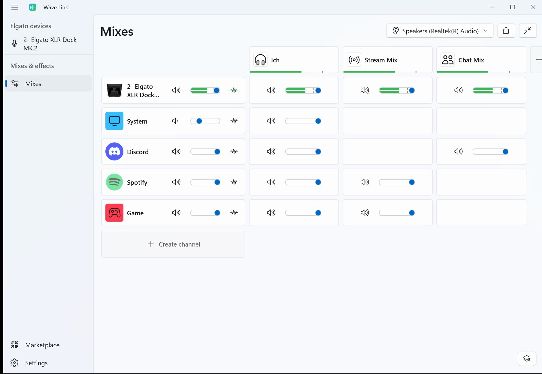 Wave Link 3.0 mixar hårdvarukällor och mjukvaruingångar för att skapa upp till fem oberoende submixar. Du kan t.ex. kombinera din röst via Wave DX-mikrofonen (hårdvara) med spelljud (mjukvara) i en stream-mix, medan en separat mix skickar Spotify enbart till dina hörlurar. Du kan också justera samma källa på olika sätt i flera olika mixar.