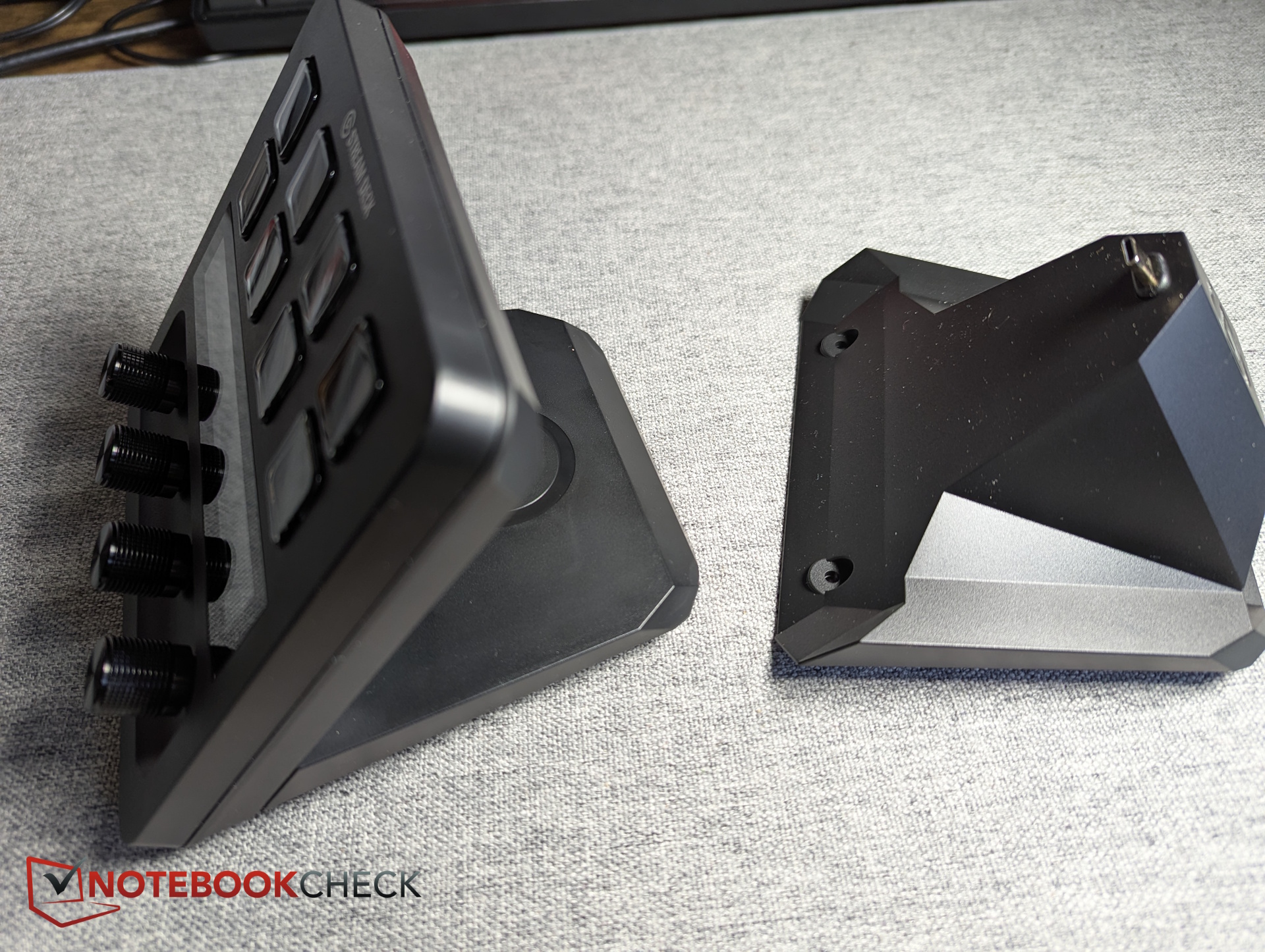 Så det första steget är att byta ut standardbasplattan på Stream Deck+ mot den nya XLR Dock MK.2. För att göra detta tar vi bort två skruvar, ansluter dockan till USB-C-porten på Stream Deck+ och skruvar tillbaka allt på plats.