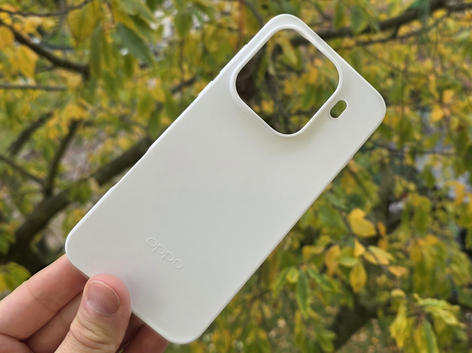 Förutom ett SIM-utmatningsverktyg och ett skärmskydd som redan är applicerat, inkluderar Oppo ett silikonfodral med sin flaggskeppssmartphone, som till och med matchar Find X9 Pro's färg.