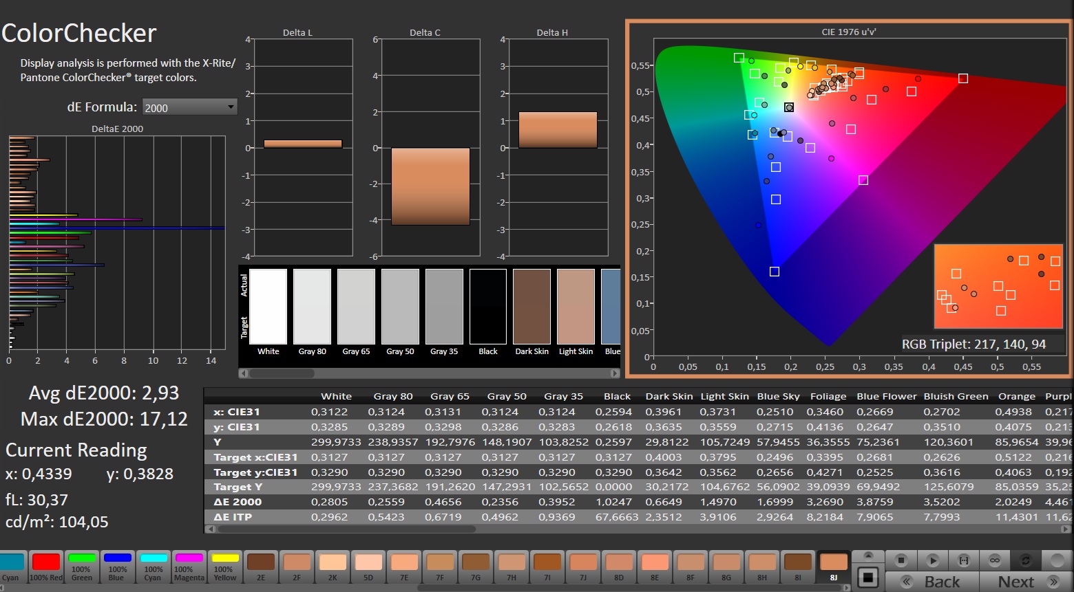 | Greyscale dE 2000 * | 3.9 | 1.7 56% | 1.7 56% | 1.9 51% | 2.05 47% |
