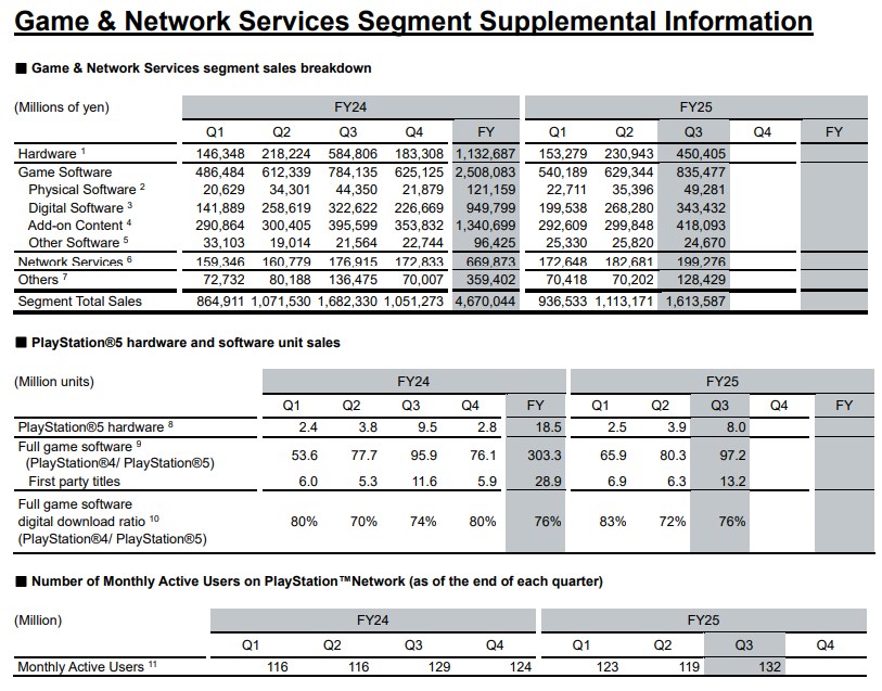 Företaget rapporterade också 132 miljoner aktiva användare per månad på PlayStation Network per den 31 december 2025. Det är en ökning med tre miljoner jämfört med samma period förra räkenskapsåret.