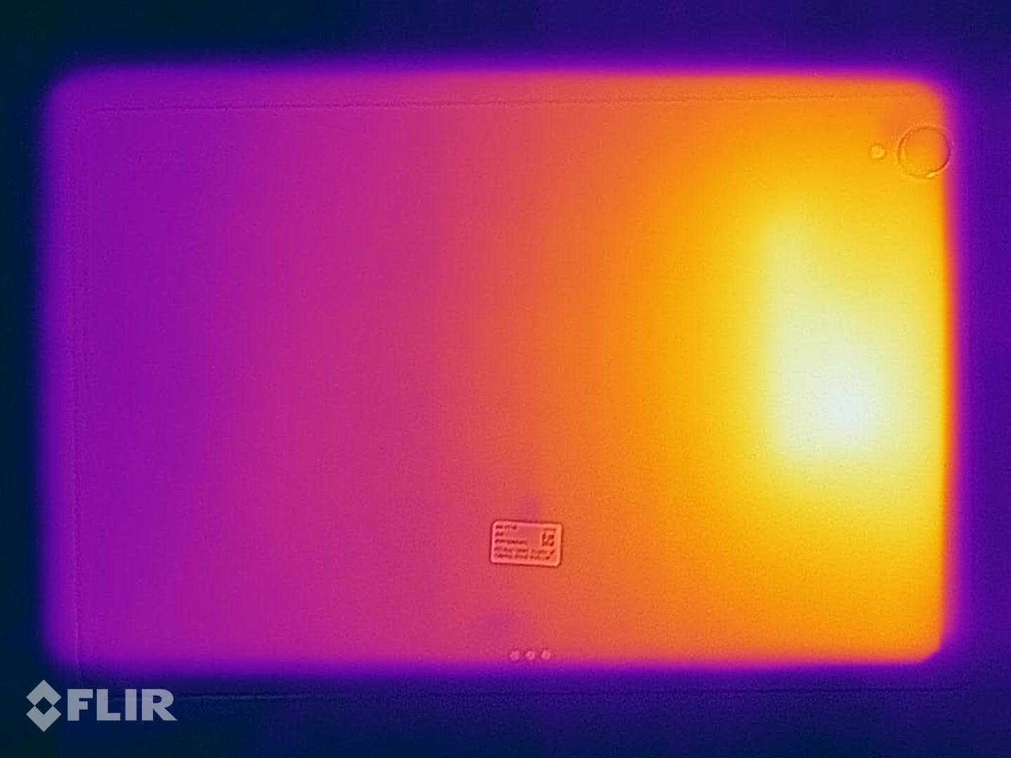 Samsung-surfplattans hölje värms upp heterogent under ihållande belastning, och detta åtföljs av måttlig strypning. 3DMark-tester visar att prestandaförlusterna under långa belastningsperioder uppgår till cirka 15 till 40 procent.
