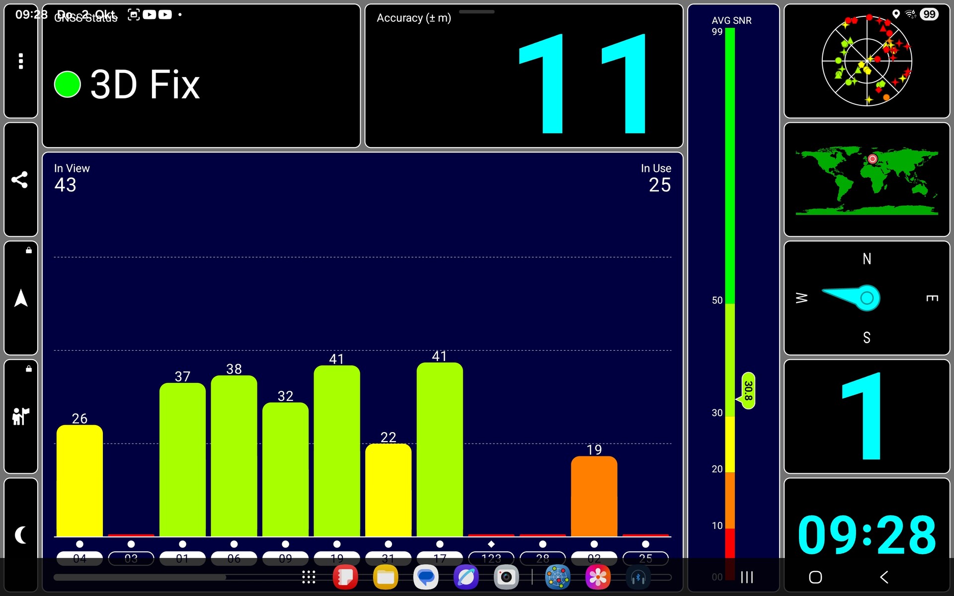 Samsung har installerat en GNSS-modul inte bara i 5G-versionen utan också i vår Wi-Fi-modell - alla vanliga satellitsystem stöds, om än bara med en enkelbandsanslutning.
