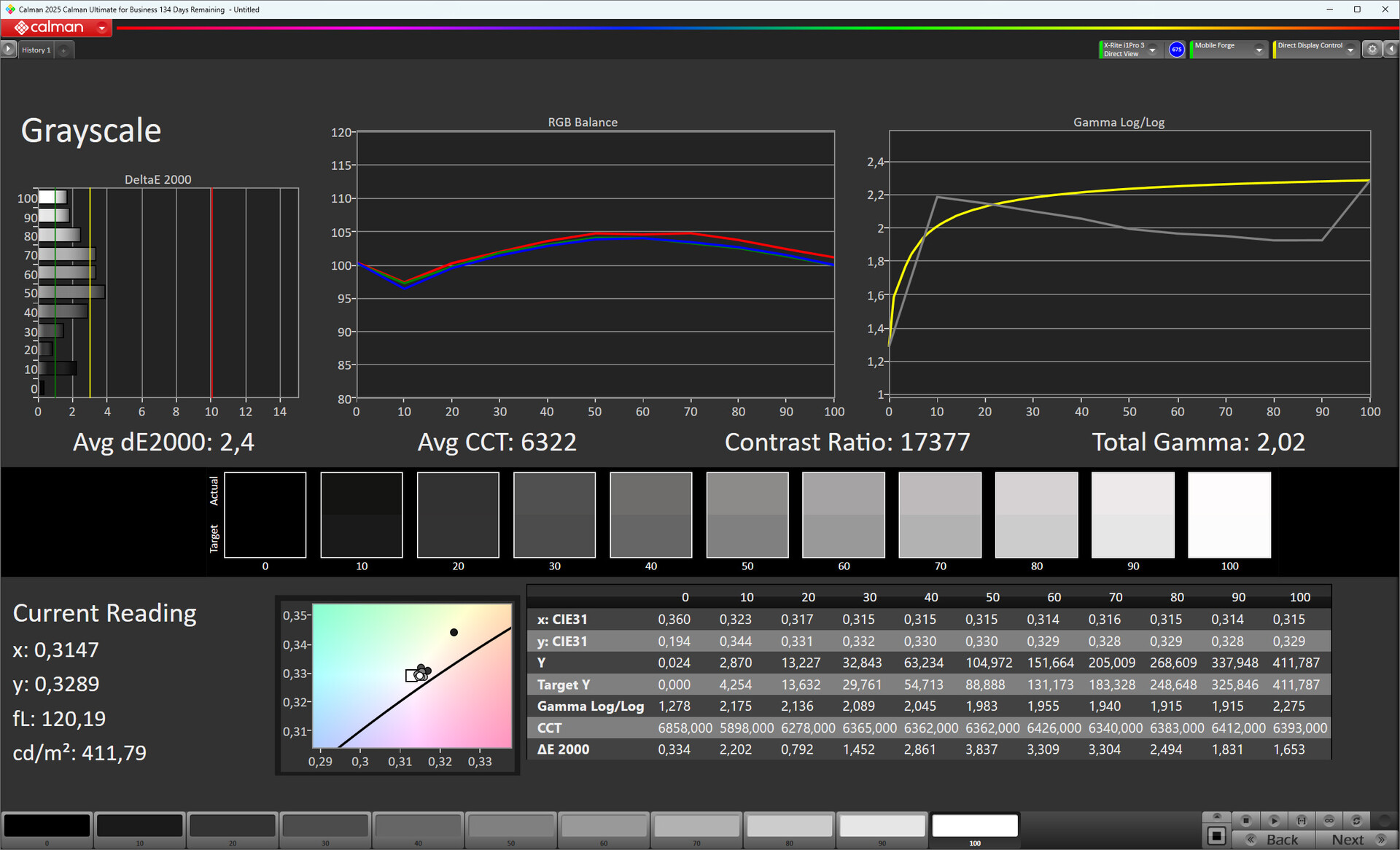 ΔE Greyscale Calman: 2.4 | ∀{0.09-98 Ø5.1}