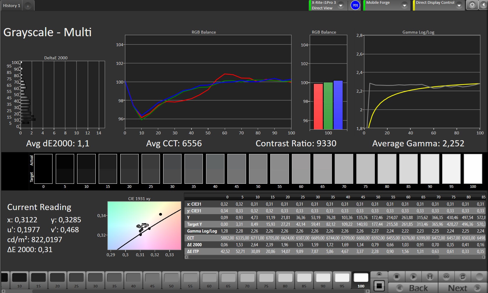 ΔE Greyscale Calman: 1.1 | ∀{0.09-98 Ø4.99}