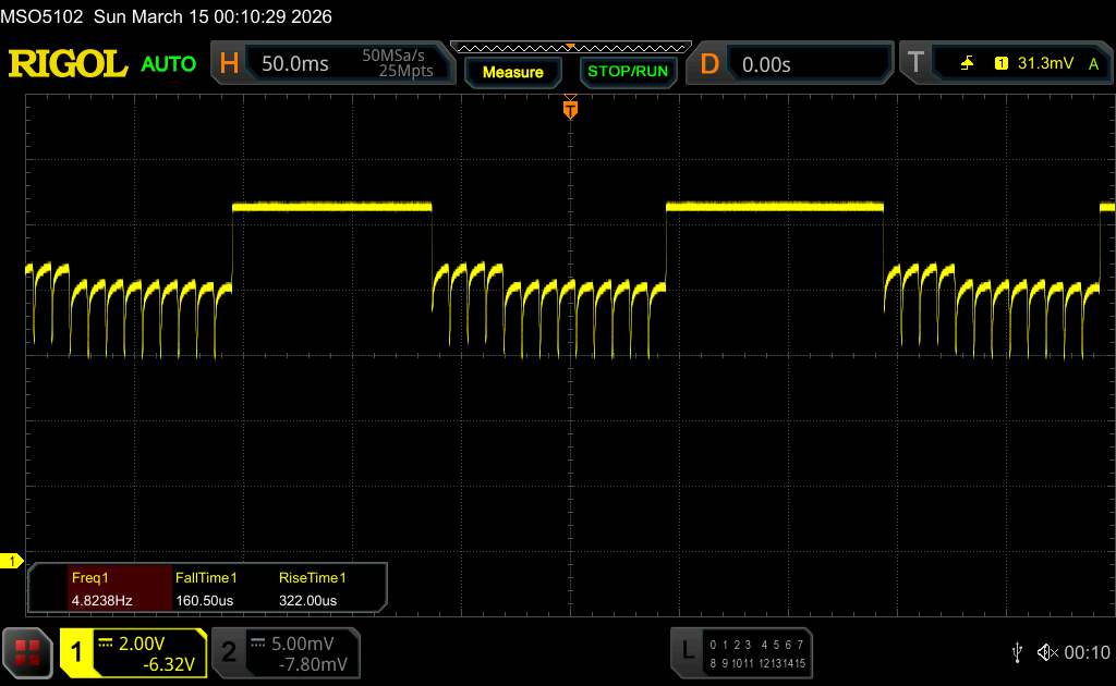 IQOO 15 Ultra använder DC-dimning vid höga ljusnivåer och PWM-dimning vid låga ljusnivåer vid 2 160 Hz för att minska de negativa effekterna av OLED-flimmer. Vi uppmätte dock en basfrekvens på endast 120 Hz, vilket innebär att hälsoproblem orsakade av pulsbreddsmodulering inte kan uteslutas.