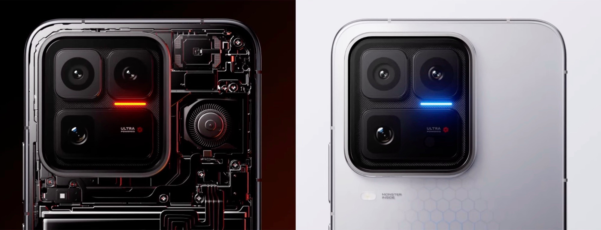 Ultra-modellens design är mycket lik den för iQOO 15, men flaggskeppstelefonen i 15-serien har nu ett slående bikakemönster på baksidan, som finns i antingen vitt eller svart. Den fyrkantiga kameramodulen har också en färgad LED-remsa som kan signalera inkommande meddelanden. Med det sagt gillade vi LED-ringen på syskonmodellen betydligt bättre.