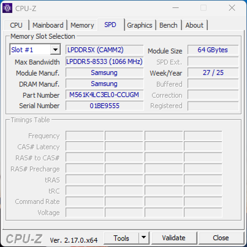 Överlag är underhållsmöjligheterna goda, och RAM-minnet kan bytas ut tack vare en CAMM2-modul, även om den maximala kapaciteten är begränsad till 64 GB. Det finns också två M.2-2280 SSD-platser (PCIe 5.0), och batteriet kan också bytas ut. Wi-Fi-modulen är dock fastlödd på plats.