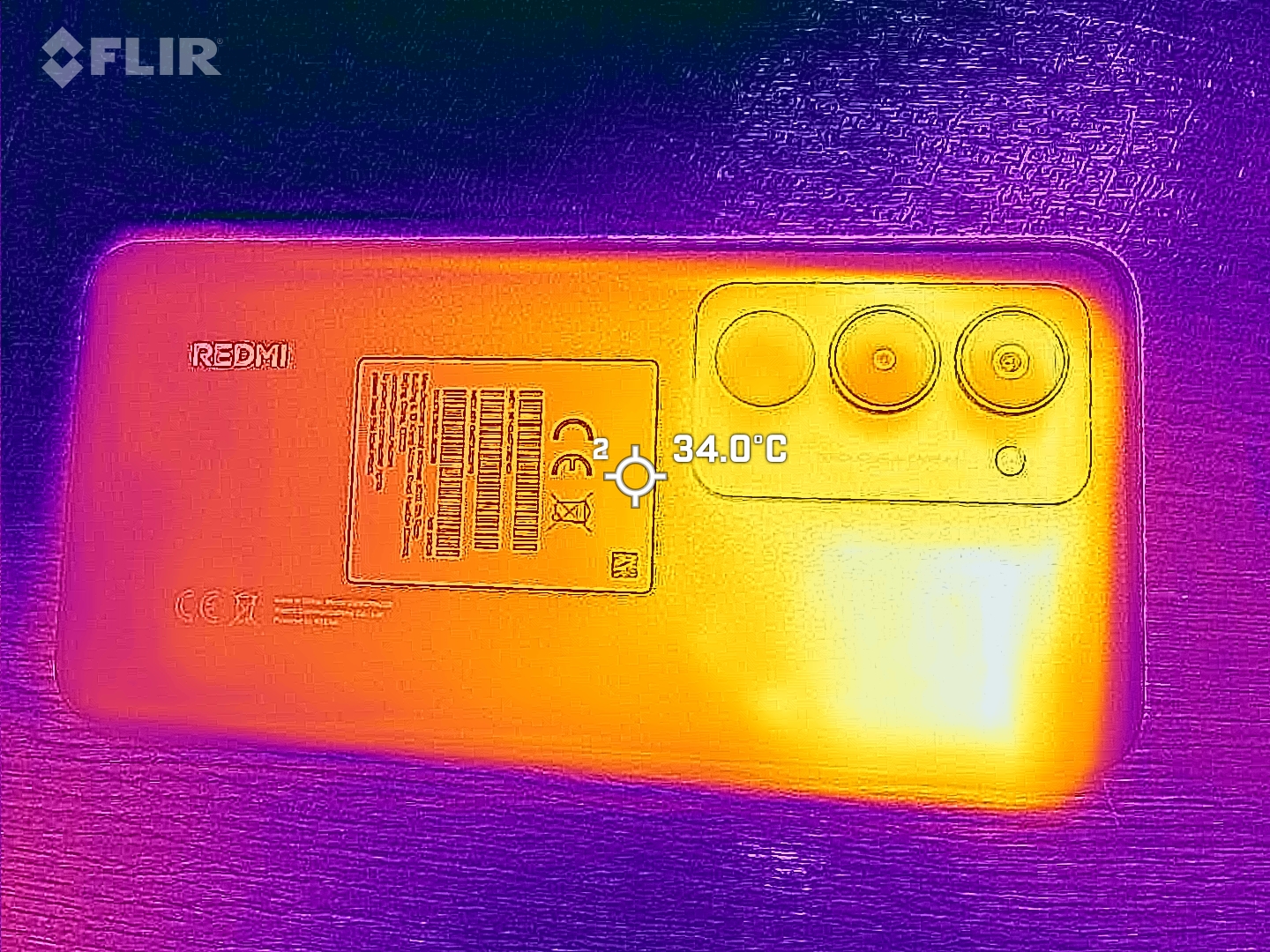 Även under långvarig belastning känns Redmi 15 inte obehagligt varm i handen, eftersom yttemperaturen inte översteg 41 °C under testningen.