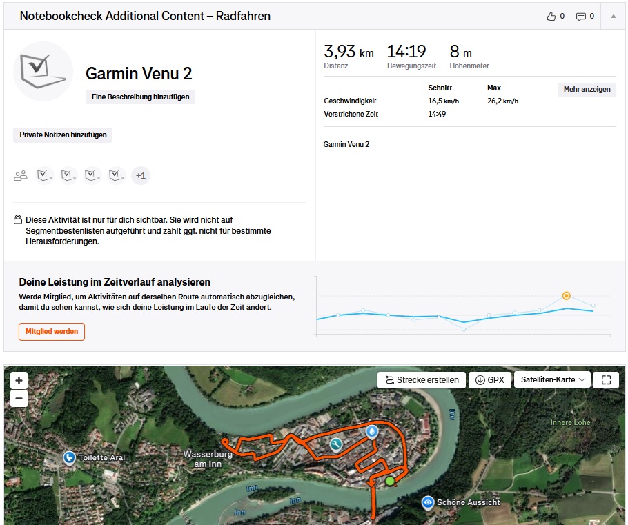 Oavsett om det är på smala gator i gamla stan eller i mindre tätbebyggda områden håller enheten den perfekta linjen nästan konsekvent och är totalt sett nästan lika exakt som jämförelseenheten, Garmin Venu 2.