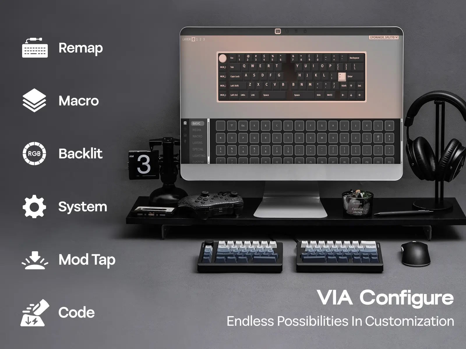 De två halvorna av tangentbordet kan placeras fritt, vilket kan möjliggöra en mer ergonomisk användning. I princip kan man tänka sig att bara använda en del av tangentbordet; vänster sida bör t.ex. vara tillräcklig för användning i skjutspel. En numerisk knappsats och en knappsats med sex tangenter saknas, men en roterande kodare ingår.