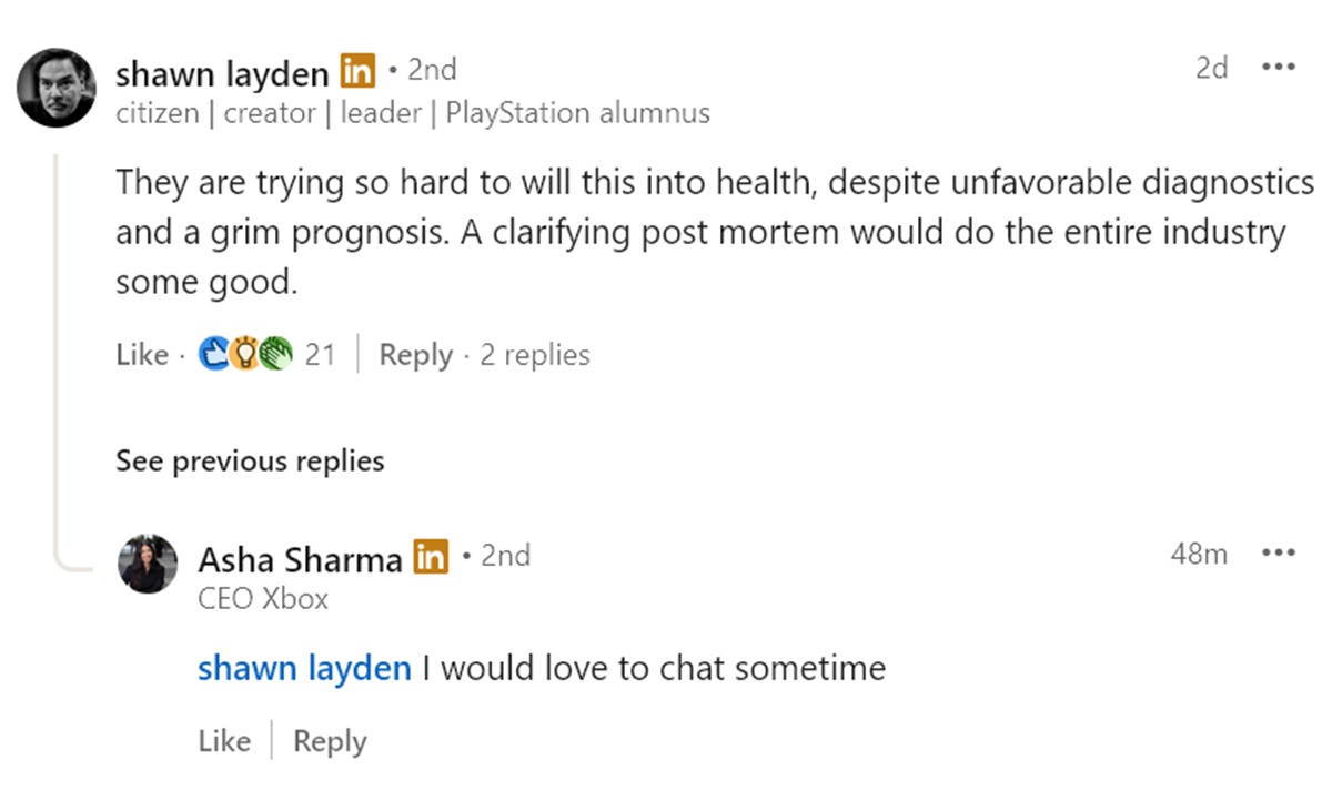 Layden svarade på en artikel från The Verge om läckta kommentarer gjorda av Xbox VD Asha Sharma. Hon medgav att nivåer som Ultimate var "för dyra för spelare". Fans såg det senaste Xbox Game Pass-prisökning i oktober 2025, vilket ledde till en våg av avbokningar. Chefen förklarade också att Microsoft måste erbjuda en "bättre värdeekvation"