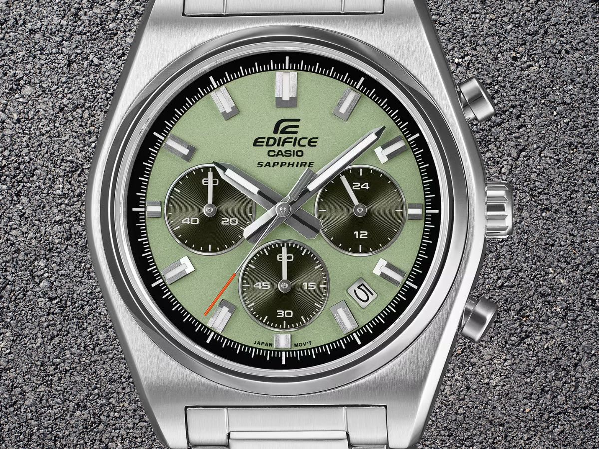 Casios Edifice EFB-730 har tre analoga visare, som sägs vara exakta inom 20 sekunder per månad. Det finns en grundläggande datumvisning och tre underuppringningar, varav en visar tiden i 24-timmarsformat. De andra två mindre urtavlorna är kopplade till 1-sekunders stoppuret och visar sekunder och minuter. Dessa klockor är vattentåliga till 100 m och bör fungera i cirka tre år med ett SR920SW-batteri.