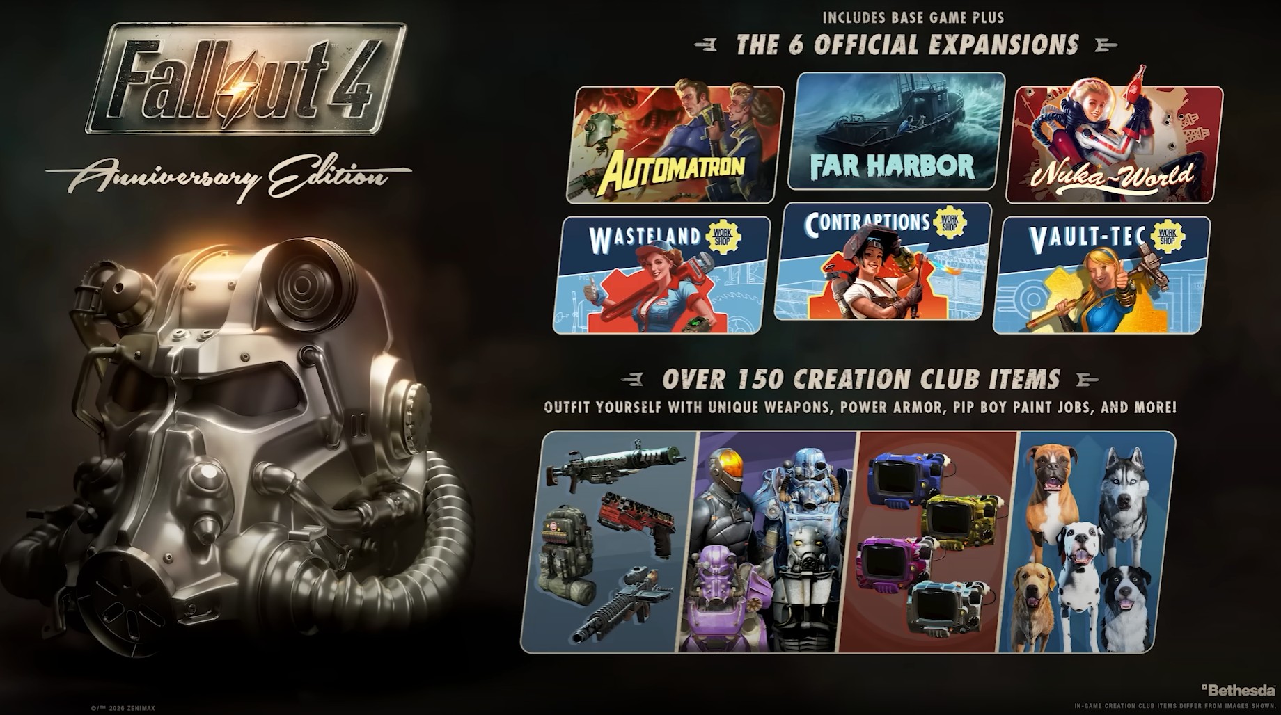 Enligt pressmeddelandet är detta första gången Fallout 4 finns tillgängligt på en Nintendo-konsol. Spelet, som finns att köpa digitalt från Nintendo eShop för 59,99 dollar, innehåller grundspelet och sex officiella tillägg. Det finns också över 150 Creations inkluderade, eftersom det inte finns någon Creations-meny i Nintendo Switch 2-versionen av spelet.