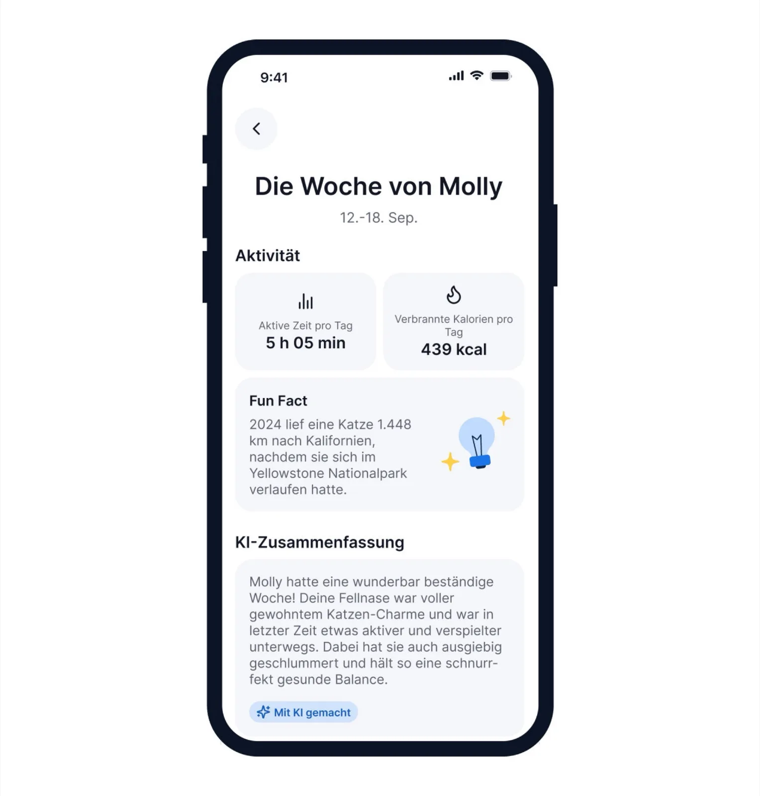 Användare kan sätta upp virtuella staket i motsvarande app för Android smartphones och för Apple iPhone(775 $ på Amazon) för att få ett meddelande när husdjuret lämnar det angivna området. Det tillryggalagda avståndet kan visas på en karta för att se hur stort kattens revir faktiskt är. Lysdioder och högtalare som kan aktiveras från smarttelefonen gör det lättare att spåra upp ett husdjur i närheten