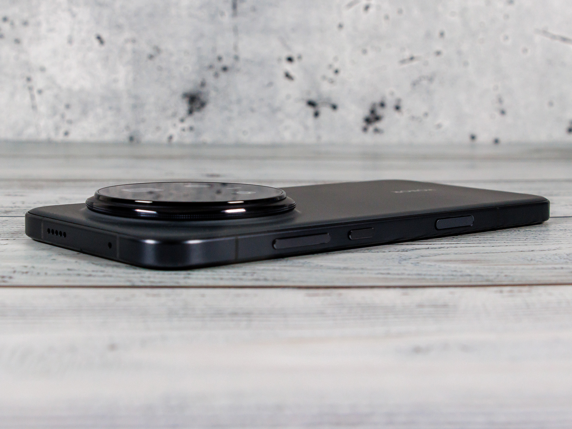 Honor Magic8 Pro finns i färgerna svart, Sunrise Gold och Sky Cyan och har en nominell tjocklek på 8,3 mm (vi mätte 8,45 mm), eller 14,4 mm inklusive kameran. Detta gör den något smalare än den tidigare modellen, Magic Magic7 Pro, när kameran är exkluderad, eller upp till 13,35 mm inklusive kameran.