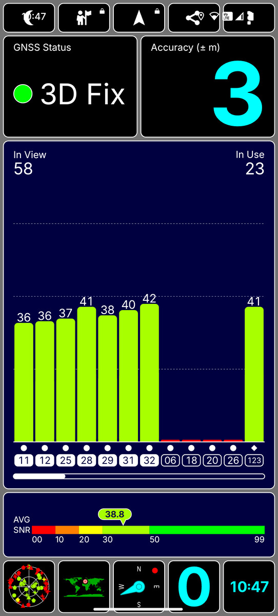 3a Pro stöder alla vanliga satellitsystem i enbandsläge. Det tog några sekunder att upprätta en anslutning under vårt test. Dessutom var positioneringen inte särskilt exakt. Under vardaglig användning kan navigeringsprogram som Google Maps användas utan problem.