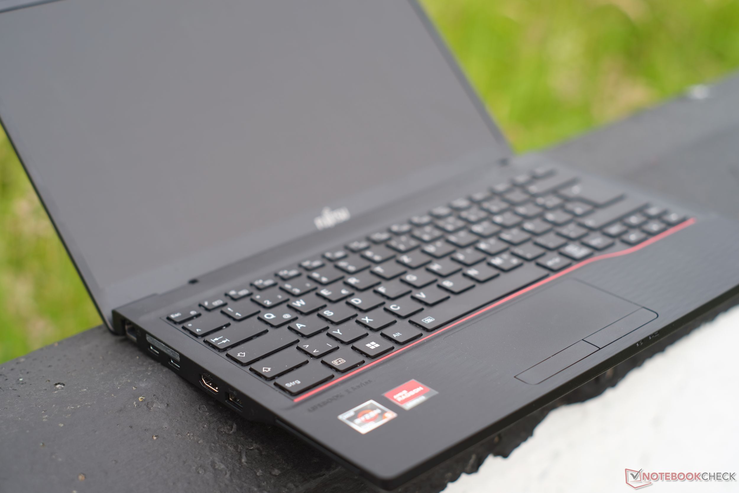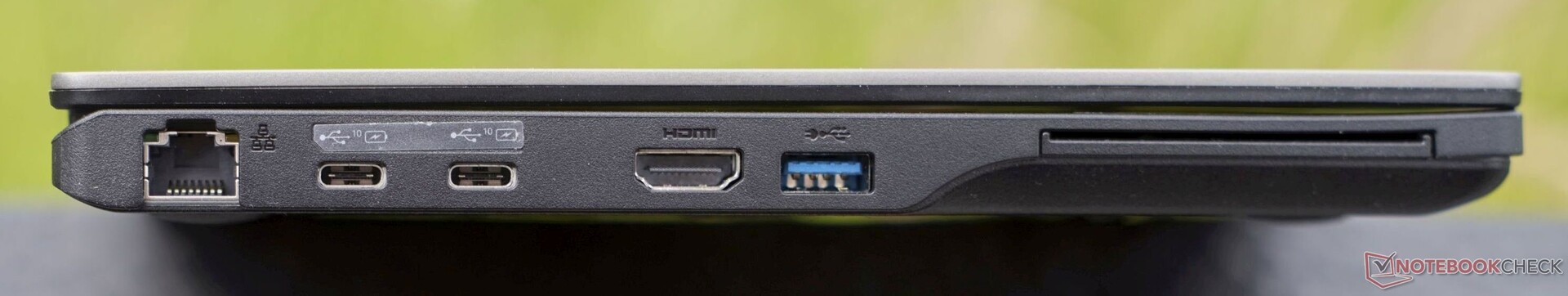 Fujitsu LifeBook levereras med en sektion av väl valda portar: Du får två USB-C 3.2 Gen2, med laddningsfunktion och DisplayPort 1.2, 1 x USB-A 3.2 Gen1 per sida, HDMI 2.0b, en microSD-kortläsare, Gigabit RJ45, en valfri smartkortläsare, ett 3,5 mm ljuduttag och en Kensington-låsanordning. Det finns en nanoSIM-kortplats på laptopsidan i WWAN (ready)-modeller.