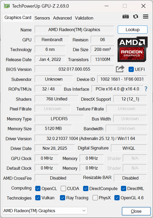 | Genomsnitt AMD Radeon 680M (7.41 - 9.53, n=4) | |