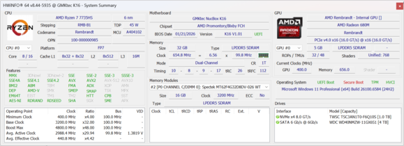 | GMK NucBox K16 AMD Ryzen 7 7735HS ⎘ AMD Radeon 680M ⎘ 32 GB Minne, 1024 GB SSD | Listpris: 650 USD | 567 g | 63 mm | x | |
