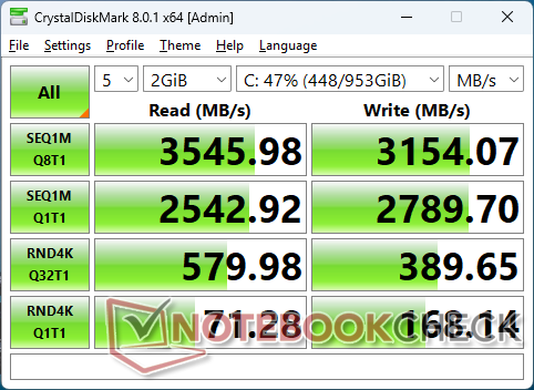 Vår enhet levereras med den relativt ovanliga Zettastone CP200 NVMe SSD. Överföringshastigheterna når en topp på cirka 3500 MB/s jämfört med >6500 MB/s från dyrare SSD-enheter som Samsung PM9A1, vilket gör CP200 till ett mellanklasserbjudande.