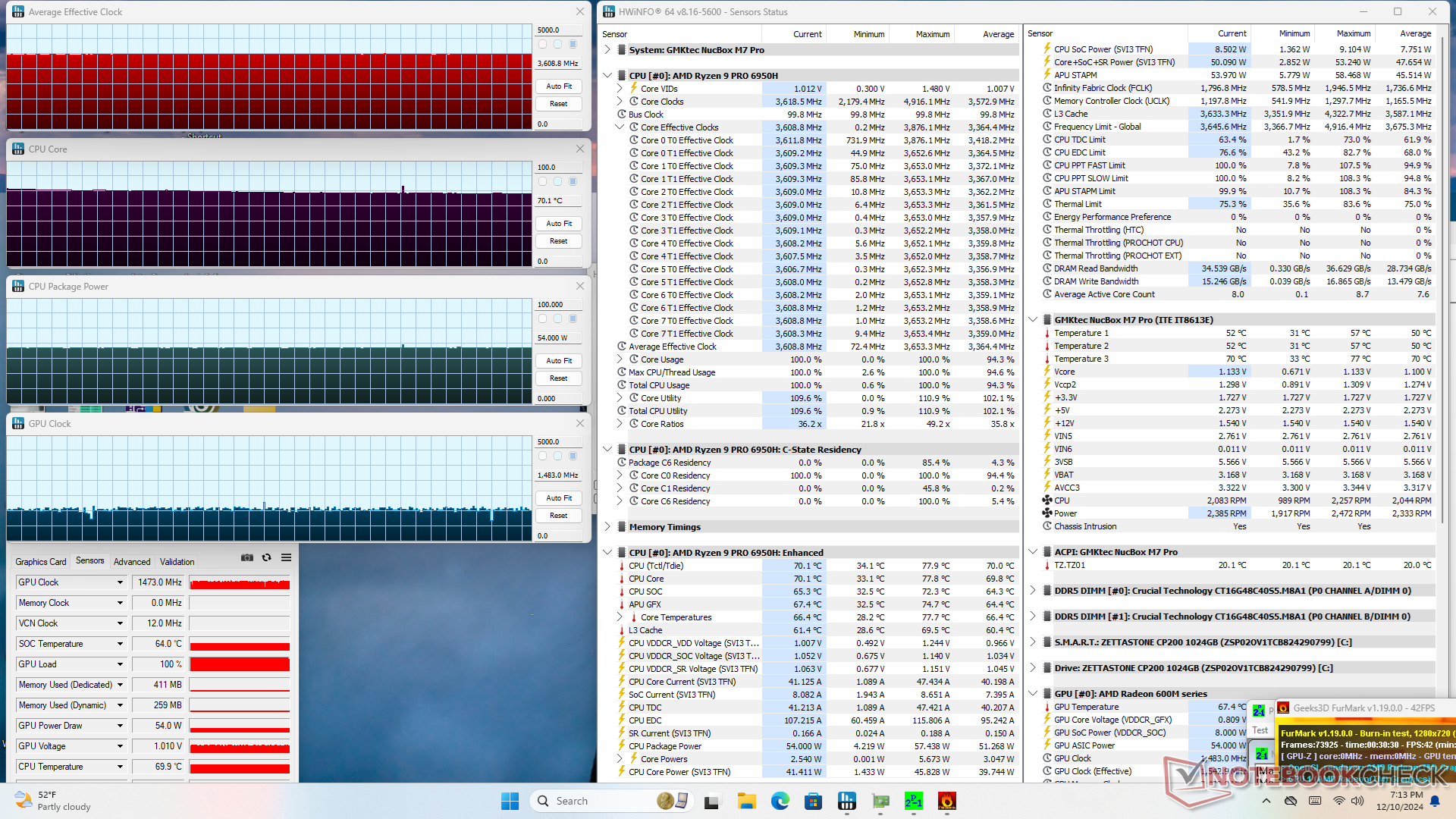 | Prime95 + FurMark Stress | 3.6 | 1483 | 70 |