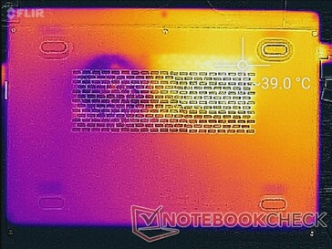 (±) Den maximala temperaturen på ovansidan är 40.4 °C / 105 F, jämfört med genomsnittet av 37.8 °C / 100 F , allt från 26.6 till 55 °C för klassen Handheld / UMPC.