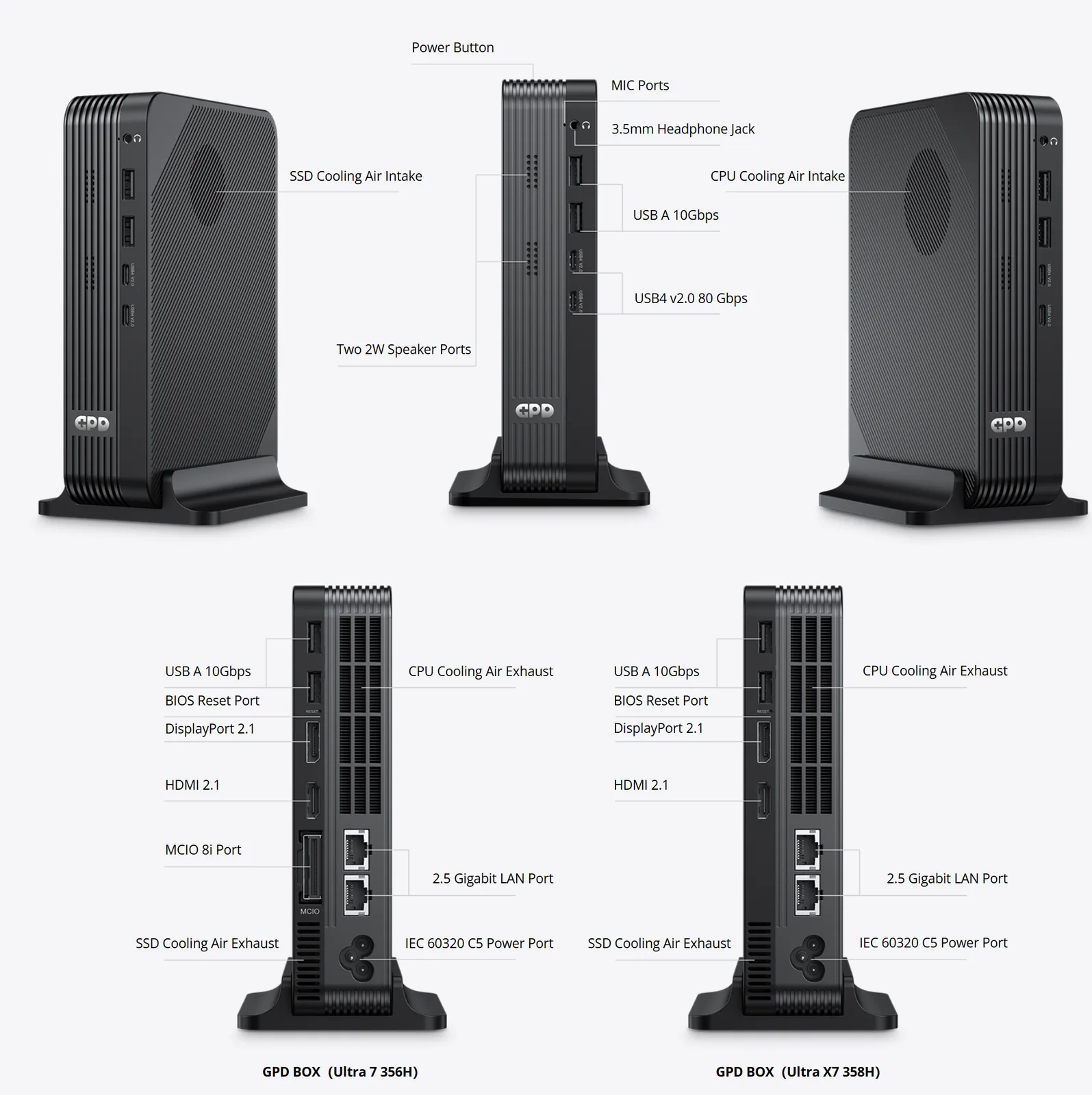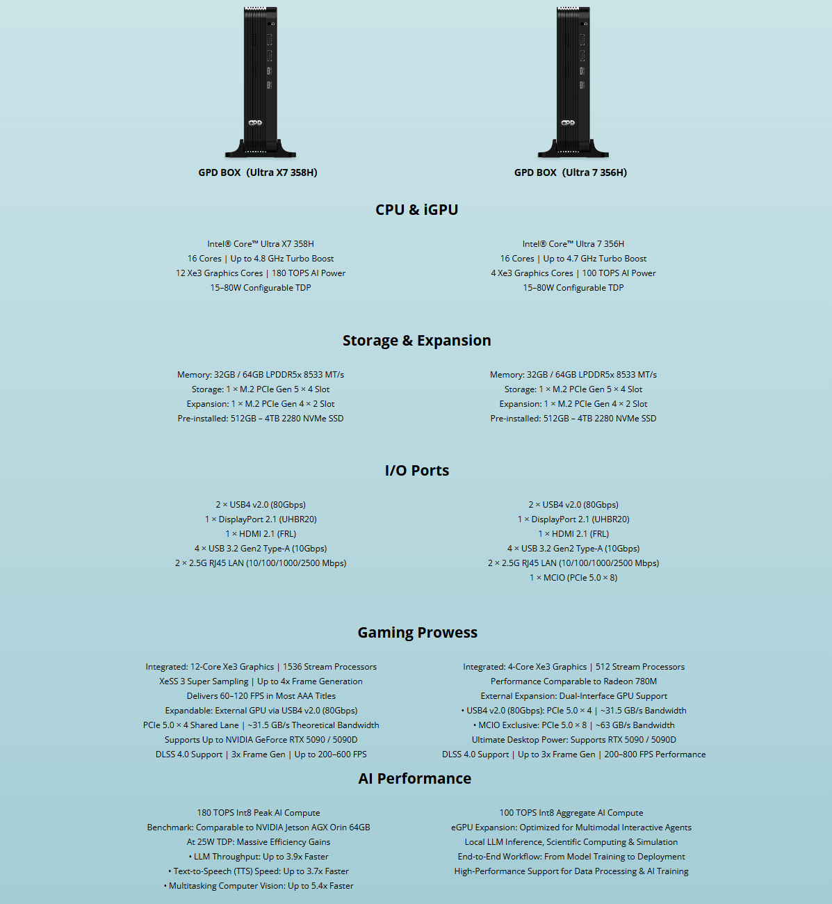 Nu har företaget delat med sig av fler specifikationer för GPD Box. Som företaget bekräftar kommer mini-datorn att drivas av Intel Panther Lake-processorer. Specifikt kommer det att finnas två alternativ tillgängliga: ett med Intel Core Ultra X7 358H och den andra med Core Ultra 7 356H.