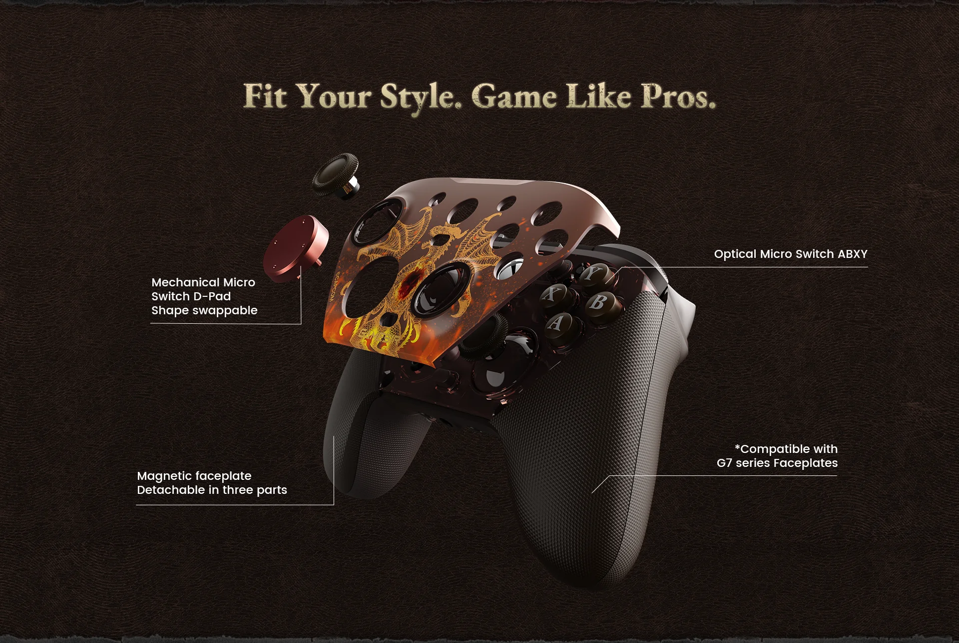 GameSir G7 Pro Dragon's Dogma II Edition är resultatet av ett samarbete mellan GameSir och Capcom för att fira tvåårsdagen av Dragon's Dogma II. Handkontrollen har en anpassad design på frontplattan och Dragon 's Dogma II-logotypen på laddningsdockan.