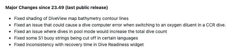 Nu, med systemprogramvaran 25.14, tar Garmin itu med fler buggar som upplevs av användare av Descent Mk3 och Descent Mk3i(nuvarande 1 399,99 USD på Amazon). För det första har företaget löst ett problem med skuggningen av konturlinjerna för batymetri på DiveView-kartan. Det finns en lösning på ett fel i dykdatorn som uppstod när användare bytte till en syrgasutspädare under ett CCR-dyk.