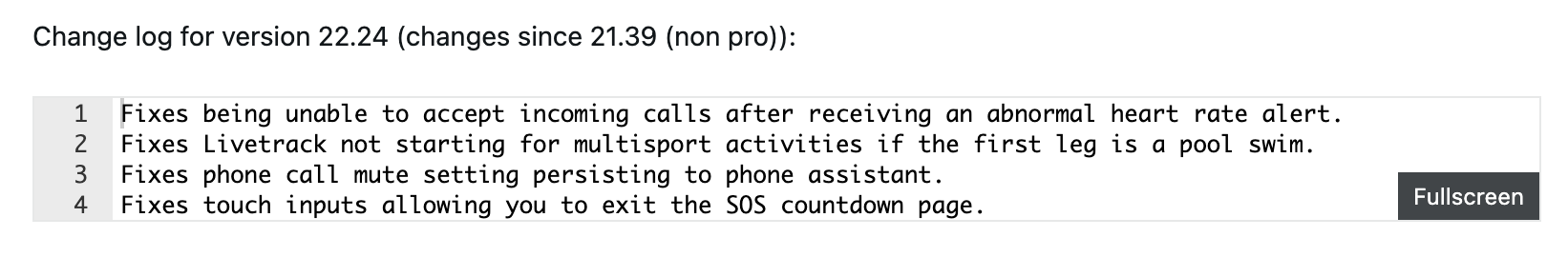 Med betaversion 22.24 åtgärdar Garmin ett problem som är kopplat till den nya LiveTrack-funktionen. Ett problem där den inte startade automatiskt för multisportaktiviteter, särskilt de som började med en simtur i pool, har lösts. I den här uppdateringen har företaget också åtgärdat en bugg som hindrade användare från att acceptera ett inkommande samtal efter en onormal hjärtfrekvensvarning. Dessutom har problem med inställningen för att stänga av telefonsamtal och SOS-nedräkningssidan också lösts.