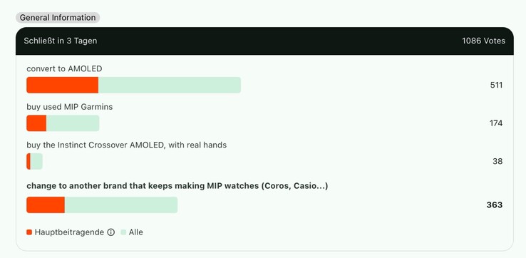 En undersökning på Reddit visar att av 1 086 svarande skulle totalt 537 kunder antingen köpa en äldre modell med MiP-skärm eller byta till ett annat märke om Garmin gav upp MiP. Endast 511 kunder skulle överväga att byta till en modell med en AMOLED-panel. 38 respondenter skulle istället välja Instinct Crossover, som kombinerar en AMOLED-panel med klockvisare