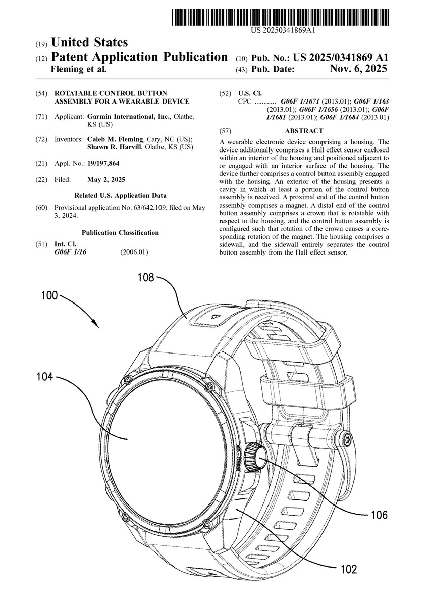 Inledningsvis misstänkte vi att ett nytt patent var källan till Gadgets & Wearables resultat. Tyvärr gav Justia och andra jämförbara webbplatser inga relevanta resultat. Wearable har dock nu upptäckt det patent som verkar understryka mycket av Gadgets & Wearables tidigare påståenden. Inlämnat som "rotatable control button assembly for a wearable device" under patentnumret 20250341869beskriver Garmin kontrollknappen på följande sätt: