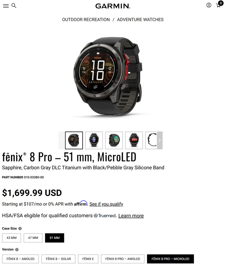 Ursprungligen fanns det ett gap på 800 $ mellan 51 mm-versioner av Fenix 8 Pro med AMOLED- och MicroLED-skärmar. Som ett resultat var det enda sättet att välja Garmins nya ultraljusskärmsteknik att spendera $ 1 999,99.
