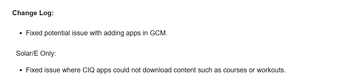 Den andra buggfixen är endast för användare av Instinct 3 Solar och Instinct E(curr. $ 199,99 på Amazon) wearables. Den löser ett problem där Connect IQ-appar inte laddade ner innehåll, t.ex. kurser eller träningspass.