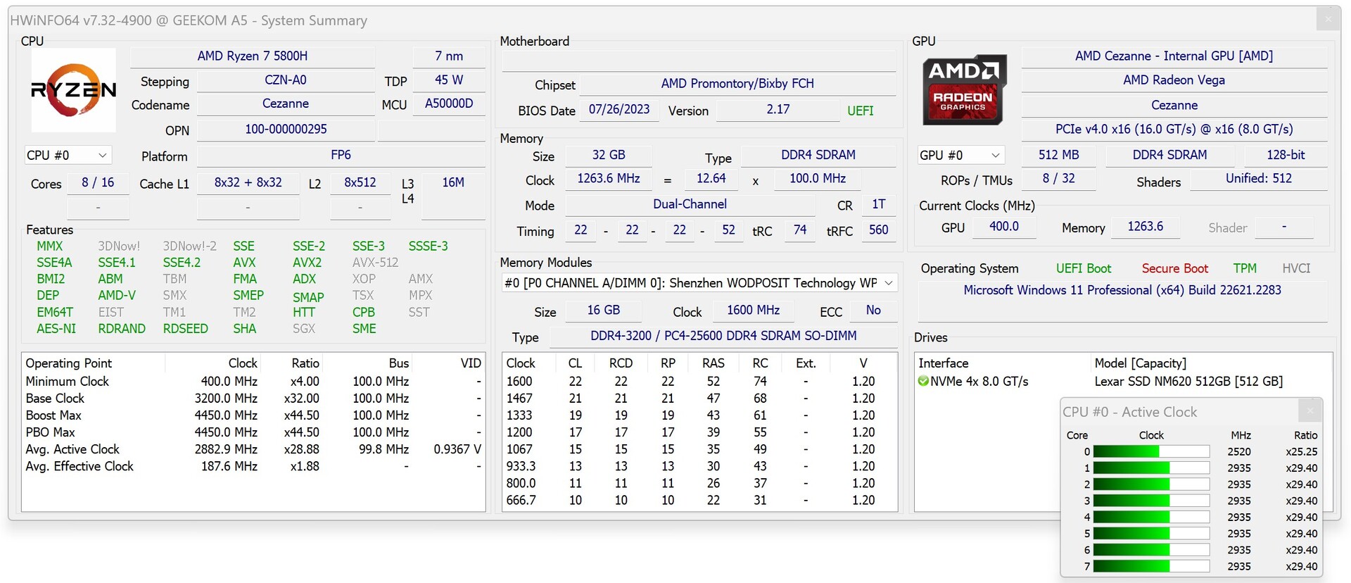 MedAMD Ryzen 7 5800Hhar Geekom A5 en bra SoC, även om den inte längre är en av de mest uppdaterade modellerna. Med de åtta Zen-3-kärnorna har A5 ingen anledning att gömma sig eftersom våra tester avslöjade bra flerkärnig prestanda. Geekom A5 klarar också utan problem minnesintensiva applikationer tack vare 32 GB RAM och 512 GB SSD.