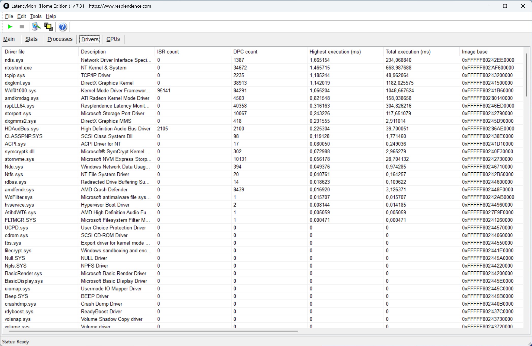 | DPC Latencies / LatencyMon - interrupt to process latency (max), Web, Youtube, Prime95 | |