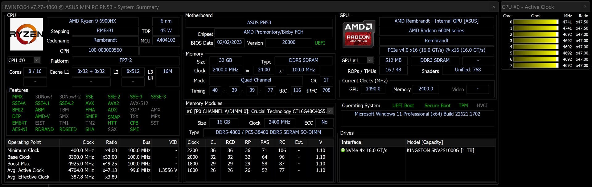 Geekom AS 6 har utrustats med enAMD Ryzen 9 6900HX - en modern SoC med en snabb iGPU. Dess prestanda ökar tack vare dess AMD Radeon 680Mleder till att den presterar bättre änGeekom AS 5som fick nöja sig med enAMD Radeon RX Vega 8. Du är välutrustad med 32 GB RAM, och dess 1 TB SSD bör vara mer än tillräckligt för de flesta användare.