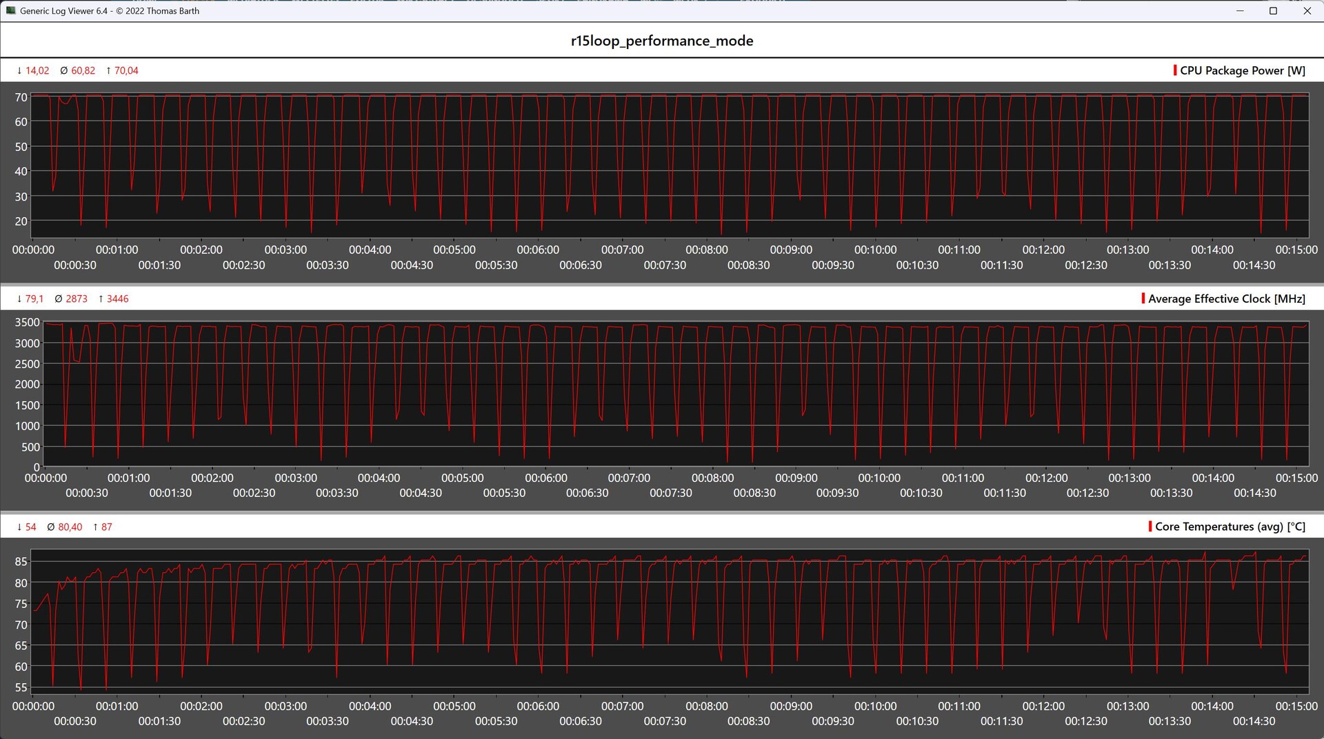 Under belastning är vårt testprov fortfarande relativt ekonomiskt med ett genomsnitt på 65,8 W, även om toppar på upp till 105 W är möjliga. När det gäller effektivitet är det dock bara tillräckligt bra för andraplatsen. Här är det Geekom AX8 Pro med AMD Ryzen 9 8945HS presterar bättre totalt sett.