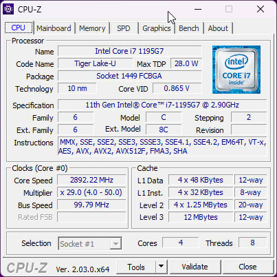 | Genomsnitt Intel Core i7-1195G7 (4.23 - 8.8, n=9) | |