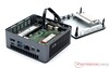 Som redan är känt är Geekom Mini IT11 väldigt lik sin Intel NUC-motsvarighet. Alla dess mått - höjd, bredd och djup - är identiska. Den har ett fint och litet fotavtryck på 11,7 x 11,2 centimeter, vilket inte kan slås av någon av dess konkurrenter som vi testade. Till skillnad från Intel erbjuder Geekom endast sin Mini IT11 i den höga versionen, vilket innebär att du alltid kan installera en 2,5-tums lagringsenhet.
