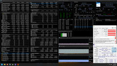 Om Prime 95 och Furmark körs samtidigt saktar CPU:n ner till en smula, vilket gör att den går ner till 1,0-1,1 GHz. IGPU:n drar sig också tillbaka något till 800 MHz. Temperaturen i hela CPU-paketet förblir dock rimlig på 69º C. CPU:n når sin nominella TDP på 28 watt under alla tre testerna (även om det finns några korta toppar till 48 och 43 watt i början av Prime95 respektive Furmark)