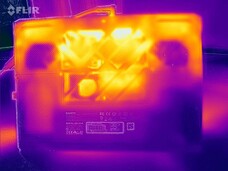 Stresstestet och Witcher 3 -testerna ger i bästa fall en måttlig uppvärmning av den bärbara datorn. Värden i det lägre 40 °C-området uppnås ibland. Vid daglig användning (Office, internetsurfning) ligger värdena kvar i det gröna området.