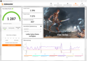 Strömförbrukningen ligger på en normal nivå för den installerade hårdvaran. Medan Witcher 3 -testet körs med en konstant energiförbrukning, fluktuerar efterfrågan något under stresstestet.