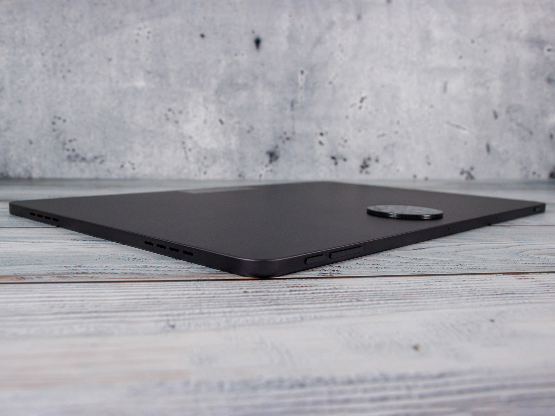 Vikten är ganska hög på 760 gram, men detta märks inte i båda händerna. De hårda kanterna på aluminiumkroppen är mer obehagliga. Utförandet är övertygande och surfplattan knakar inte ens när den vrids.