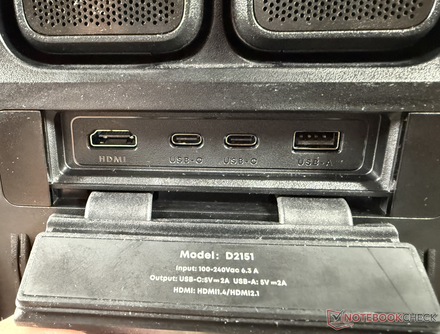 Ett antal anslutningar finns på enhetens baksida under ett gummerat lock. Det finns en HDMI 2.1-port, två USB-C-portar och en USB-A-port (vardera med 10 W). Det finns ingen ljudutgång (som på Nebula X1) eller LAN-port. Trådlös anslutning tillhandahålls via dual-band Wi-Fi 5 och Bluetooth.