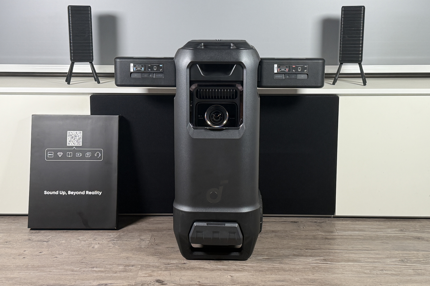 Anker Soundcore har tagit itu med dessa "problem" med den nya X1 Pro och packat in ett 7.1.4 spatialt ljudsystem med Dolby Atmos i XXL-projektorn. Detta innebär att det finns totalt 7 horisontella kanaler, subwoofers och fyra högtalare för höjdskillnader.