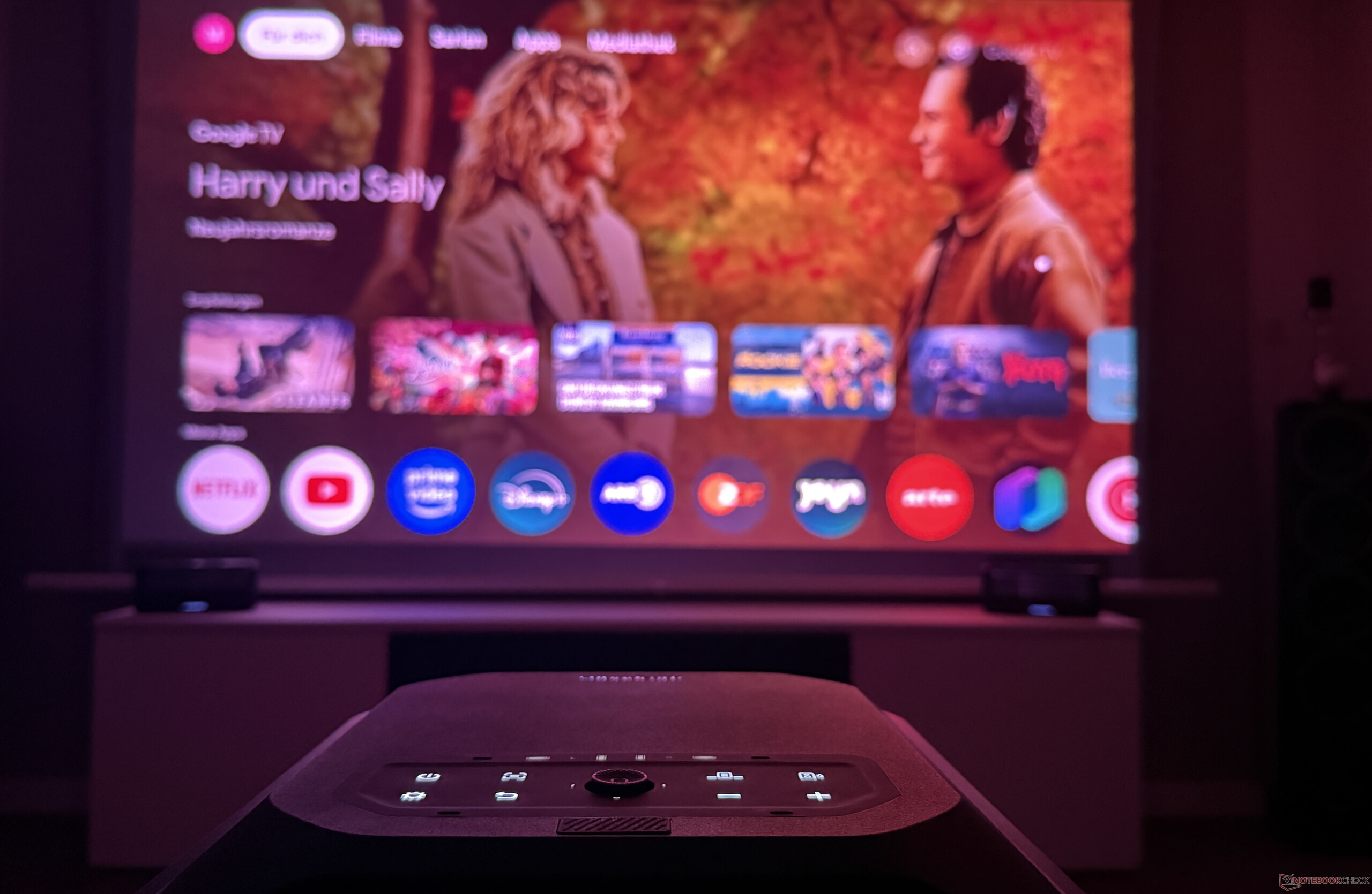 Precis som med den lilla modellen gäller samma sak för den stora X1 Pro: laserprojektorn ger en tilltalande bild i mörka rum. Resultatet är också helt acceptabelt inomhus i dagsljus, t.ex. för att titta på fotboll på en lördagseftermiddag.