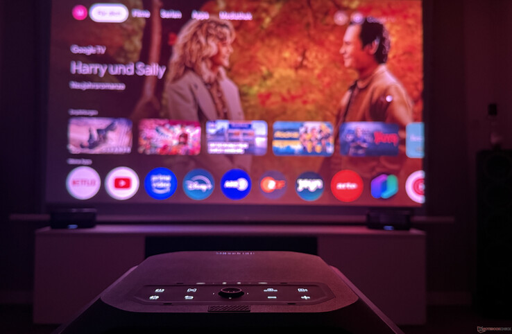 Anker Soundcore förlitar sig på Google TV som sitt operativsystem. Installationen är enkel, särskilt med ett befintligt Google-konto, och tar bara lite tid. Ett antal appar är redan förinstallerade, inklusive viktiga streamingtjänster, inklusive officiell Netflix-åtkomst (inklusive knappar på fjärrkontrollen). Google TV ger också tillgång till röststyrning via Google Home (det finns också en knapp på fjärrkontrollen). Trådlösa sändningar är möjliga via Google Cast och AirPlay (med Nebula Cast-appen).