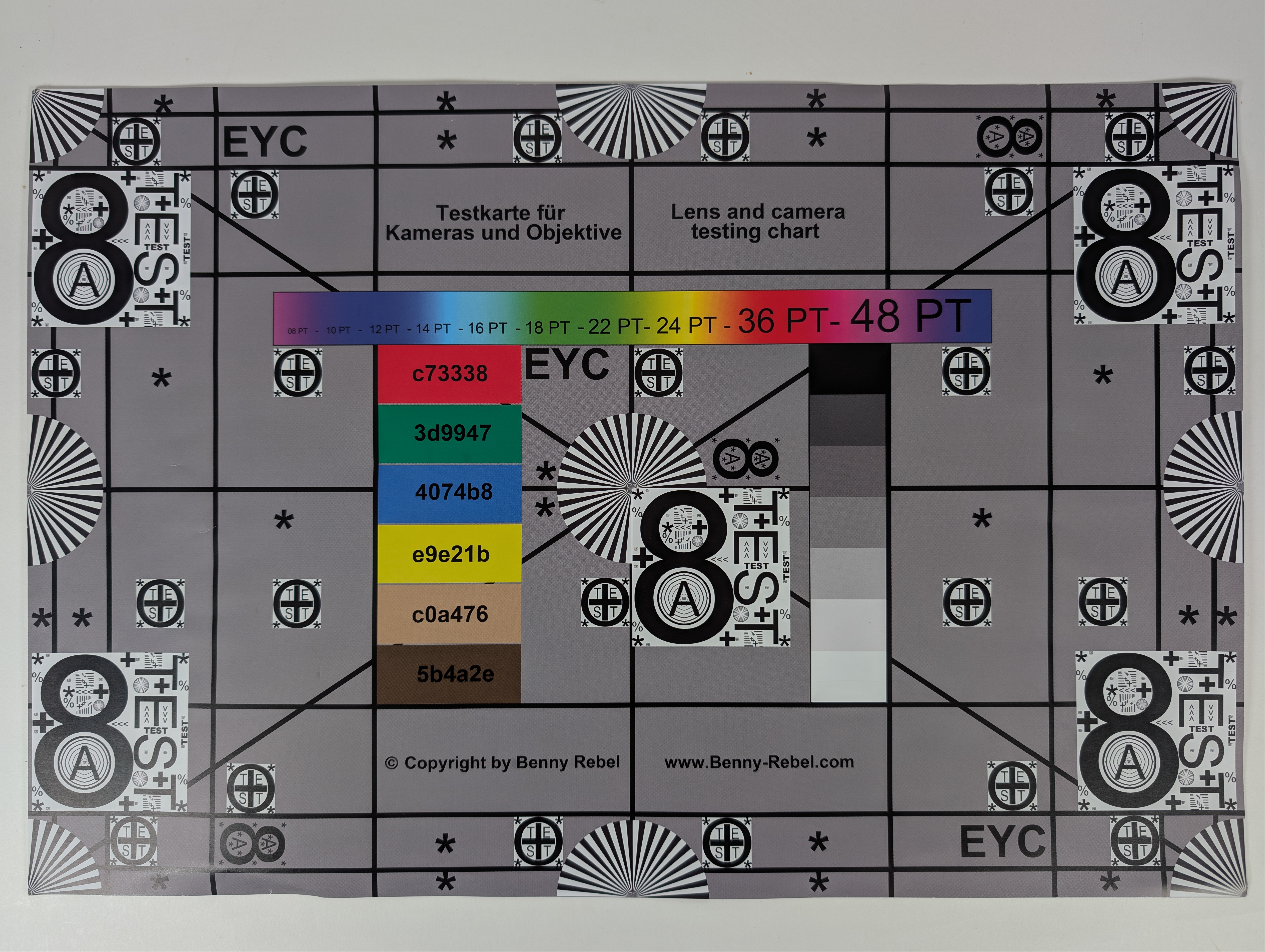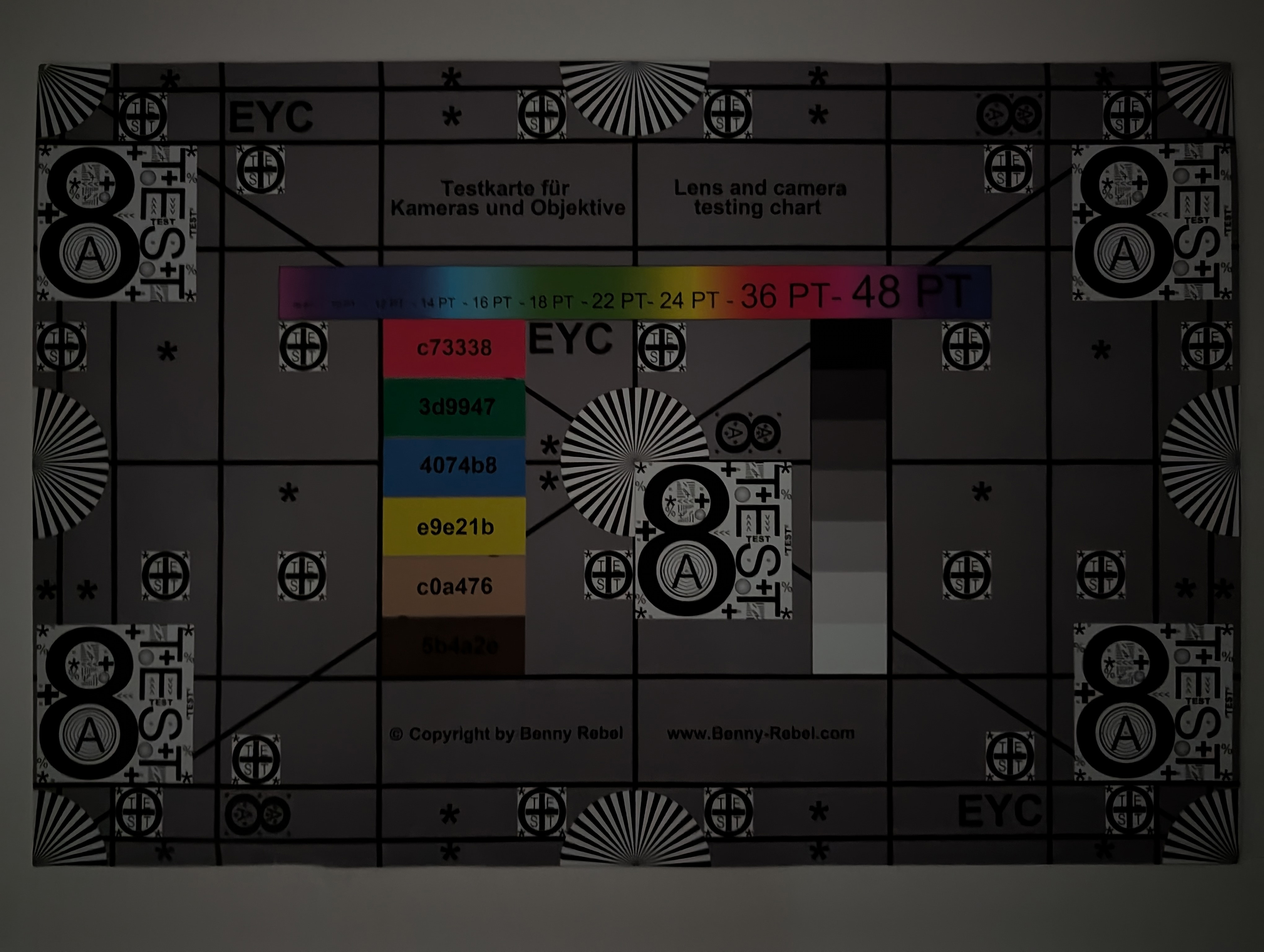 HauptkameraHauptkameraUltraweitwinkel5-facher ZoomLow-LightGoogle Pixel 10 Pro visar bra bildprestanda under kontrollerade ljusförhållanden. Även om vårt testkort är något mörkare, fångas det också med stor detaljrikedom och förblir jämförelsevis skarpt även i de perifera områdena.